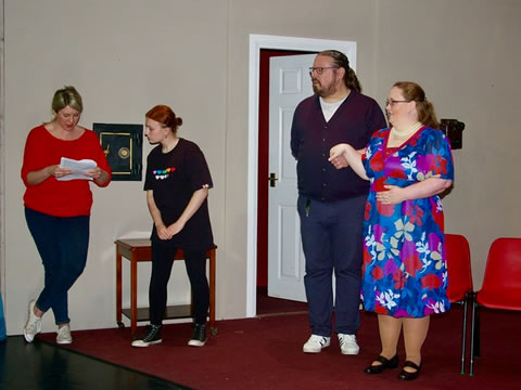 Gerry, the theatre manager/director, has no idea what disasters await her. The ‘murder mystery’ plot doesn’t really have a murder, and to top it off the playwright keeps changing the story, and the script, up to two days from its premiere! It doesn’t help that the cast is disgruntled, and the playwright accidentally deletes the entire sound effects board. All of the disasters come to fruition in Act III when the company performs the actual show with hilarious mishaps at every turn.