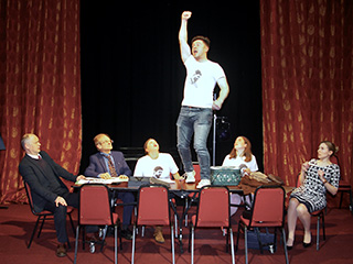 Josh Hayes was awarded Best Actor for his role of Eric. (That’s him in the pic, on the table.) There were Special Mentions for Howard Whitehurst, Director, Gennie Price, Best Newcomer, and also for costumes and technical presentation.